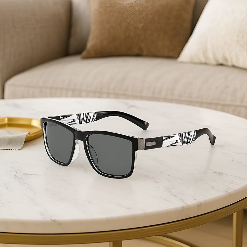 European style polarized sunglasses with ink mirror finish. UV400 protection, lightweight frame, scratch-resistant lenses, suitable for driving and outdoor activities.